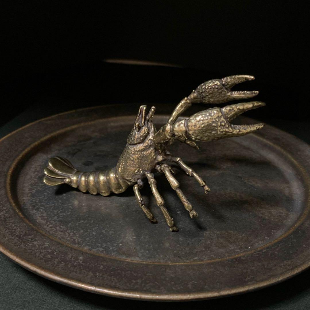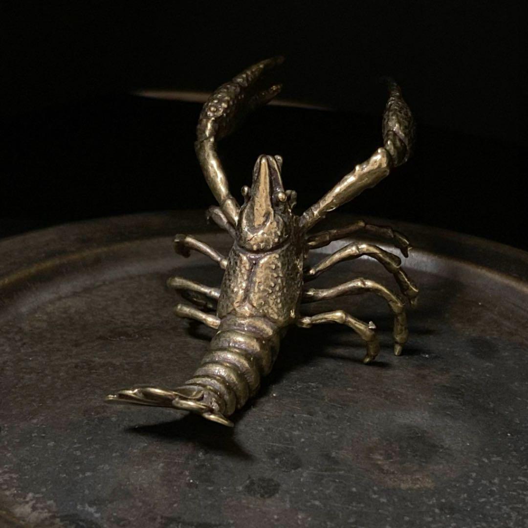 016 真鍮 置物 ザリガニ ビンテージ 風水 開運 金運 グッズ リアル 工芸品