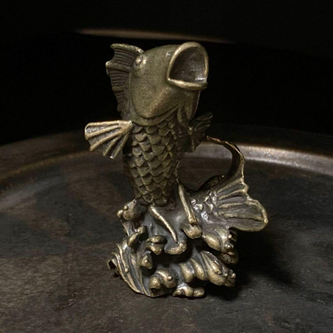 017 真鍮 置物 コイ 鯉 錦鯉 ビンテージ 風水 開運 金運 グッズ リアル