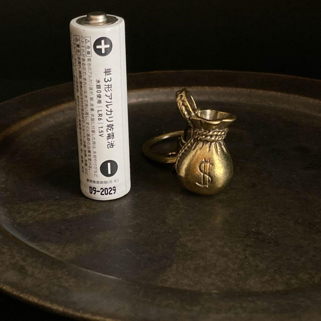 110 真鍮 キーホルダー ドル袋 $ 袋 ビンテージ 風水 開運 金運 グッズ