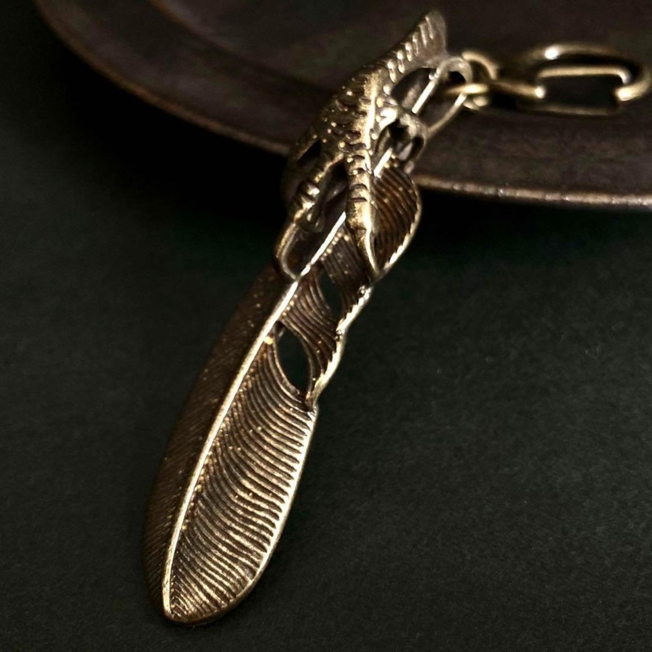 157 真鍮 キーホルダー フェザー 鷹の爪 イーグル 羽根 ビンテージ 金運