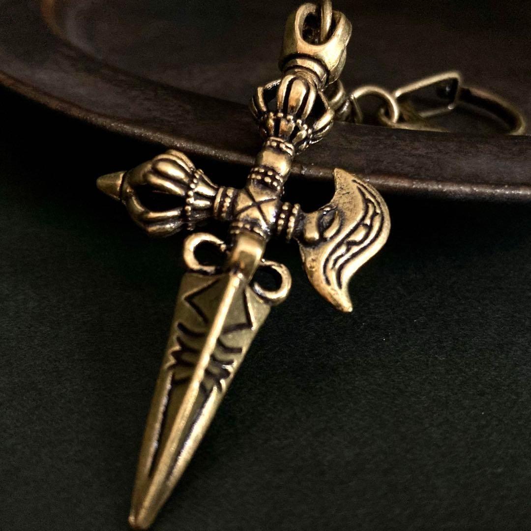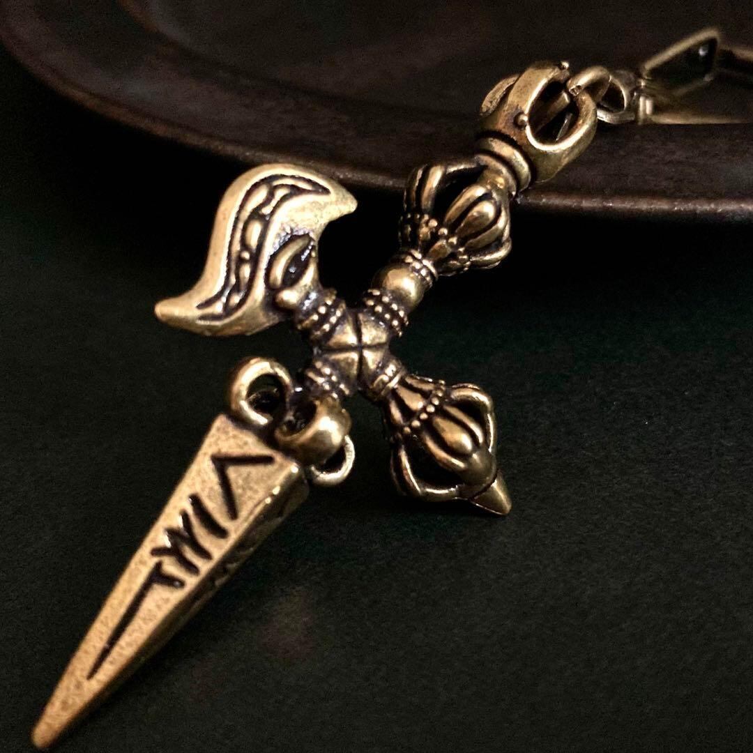 160 真鍮 キーホルダー 十字架 クロス b ビンテージ 風水 開運 金運