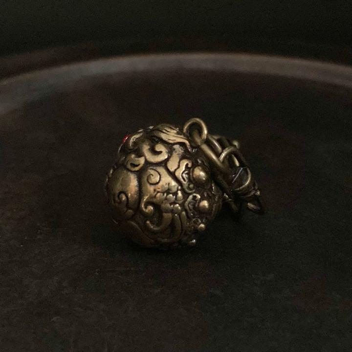 163 真鍮 キーホルダー 赤目 貔貅 ヒキュウ 風水 開運 金運 ビンテージ