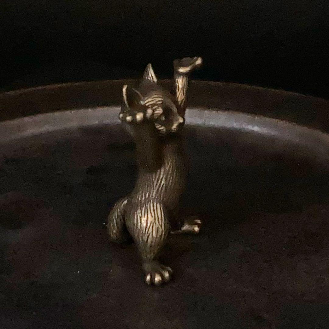 053 真鍮 置物 ネコ 猫 立ち ビンテージ 風水 開運 金運 グッズ リアル