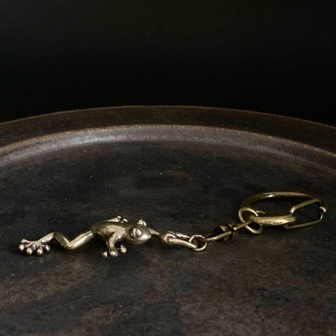 097 真鍮 キーホルダー 蛙 カエル 持ち手 ビンテージ 風水 開運 金運