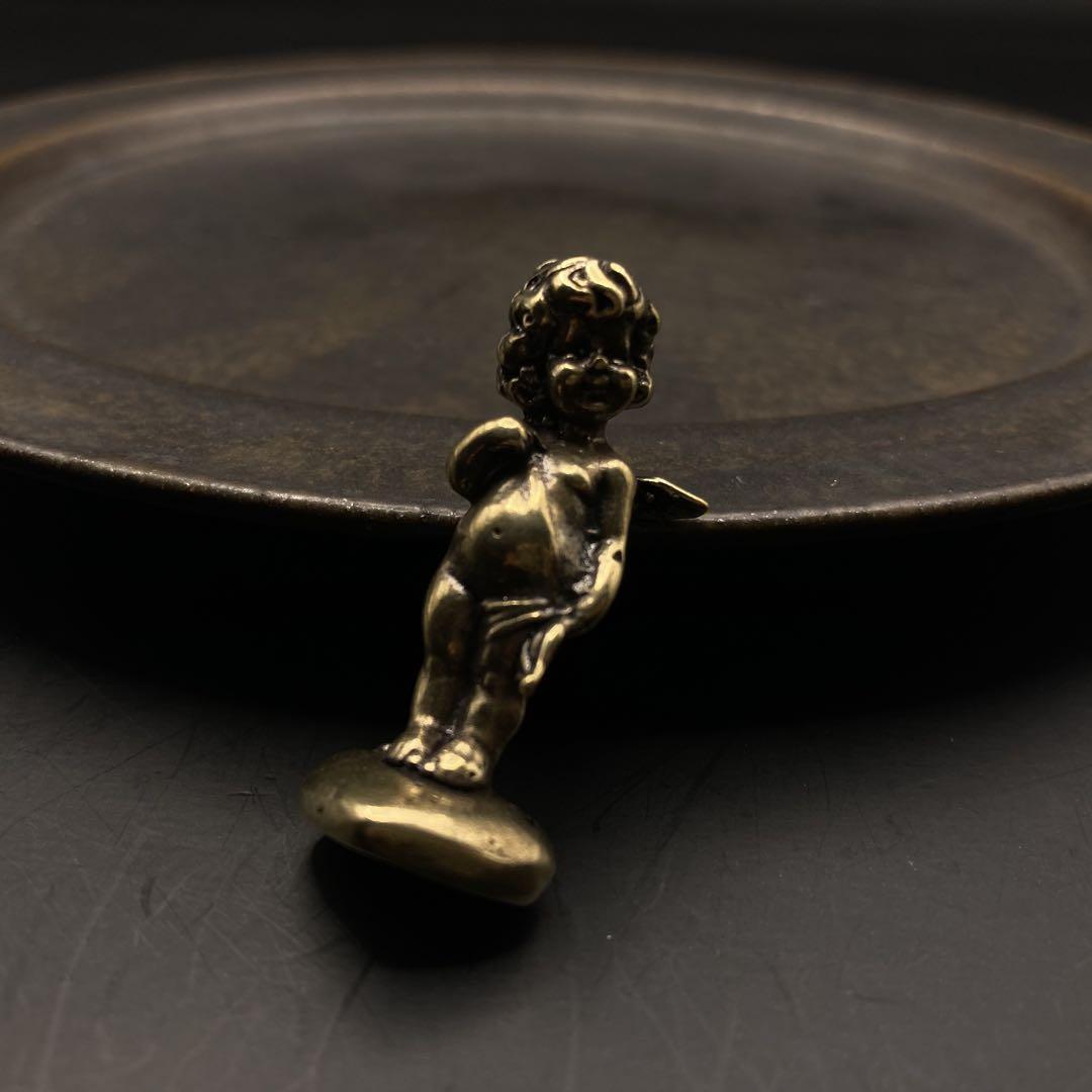 061 真鍮 置物 天使 男 ビンテージ 開運 金運 幸運 レトロ アンティーク