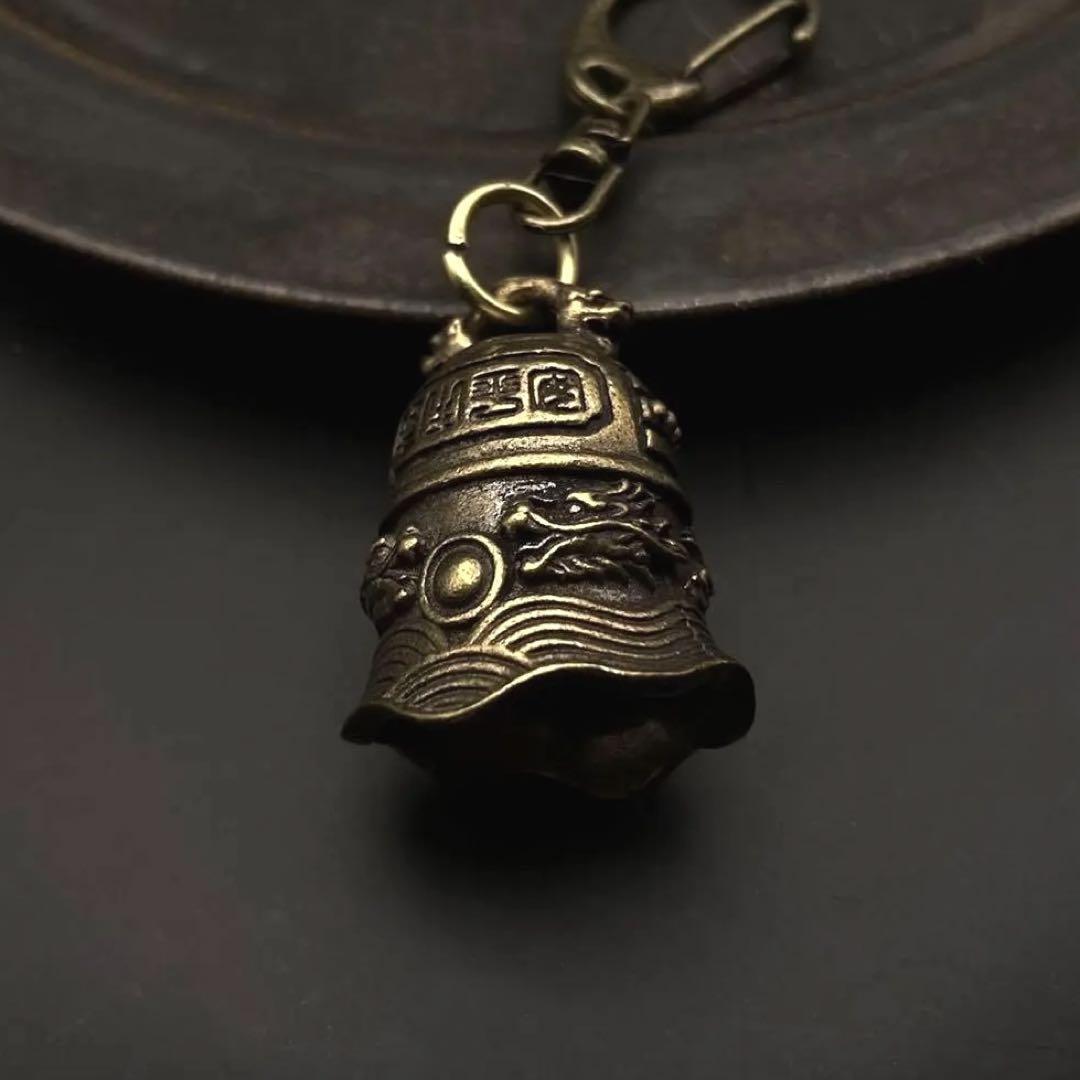 130 真鍮 キーホルダー ガーディアンベル 鈴f ビンテージ 風水 開運 金運