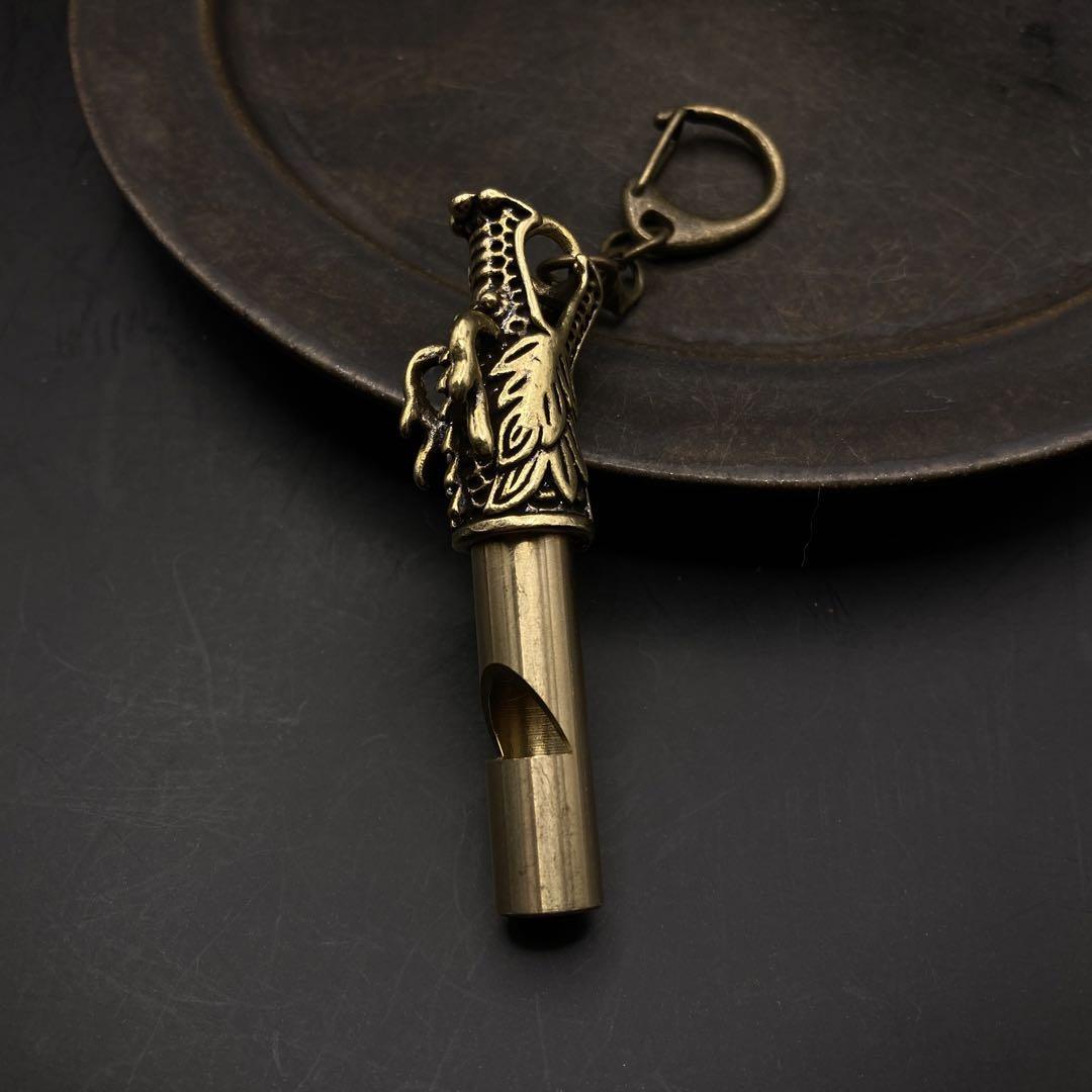 188 真鍮 キーホルダー 笛 ホイッスル ドラゴン 龍 竜 ビンテージ 辰