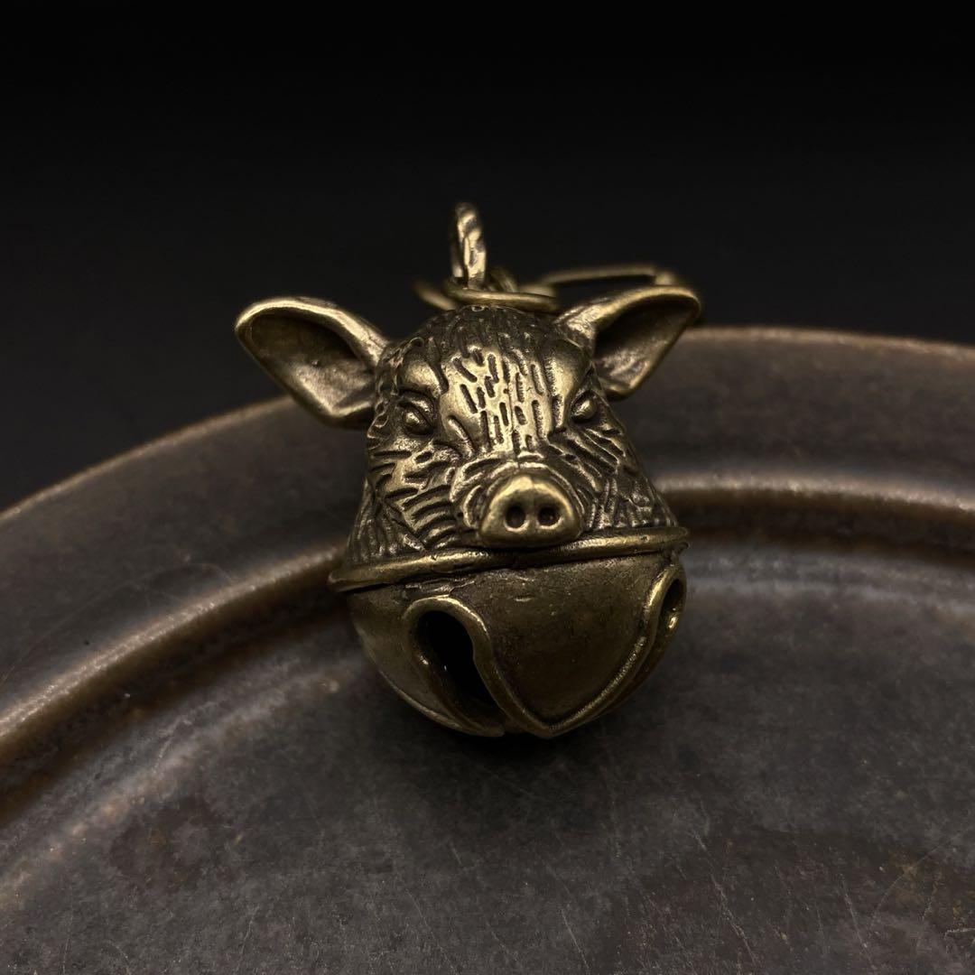 196 真鍮 キーホルダー ガーディアンベル 鈴 ブタ ビンテージ 開運 金運