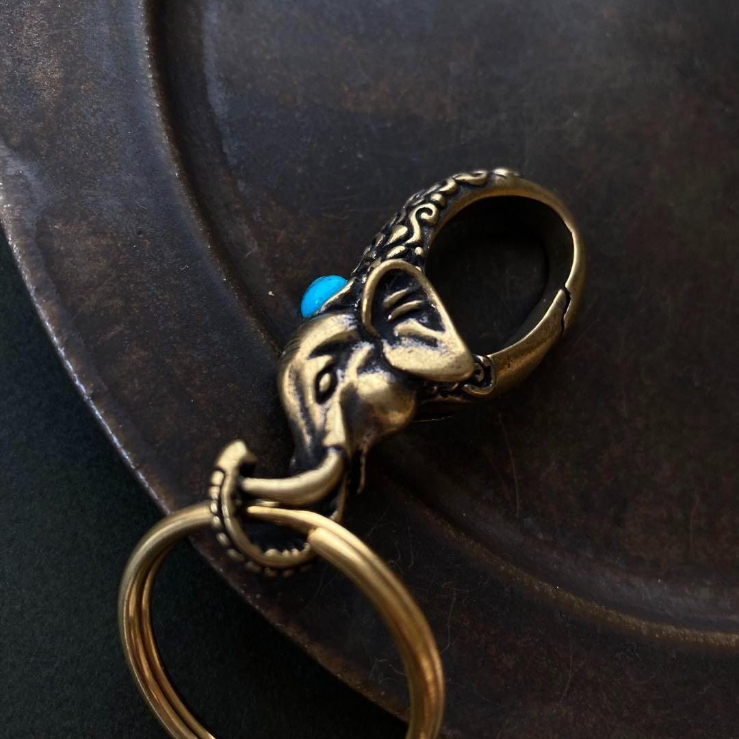 206 真鍮 キーホルダー キーリング カラビナ フック 象 ビンテージ レトロ
