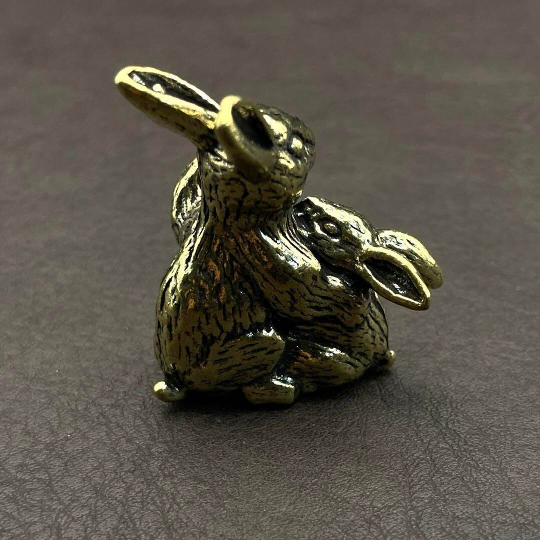 246 真鍮 置物 アンティーク ヴィンテージ ハンドメイド 動物 ウサギ 兎 親子
