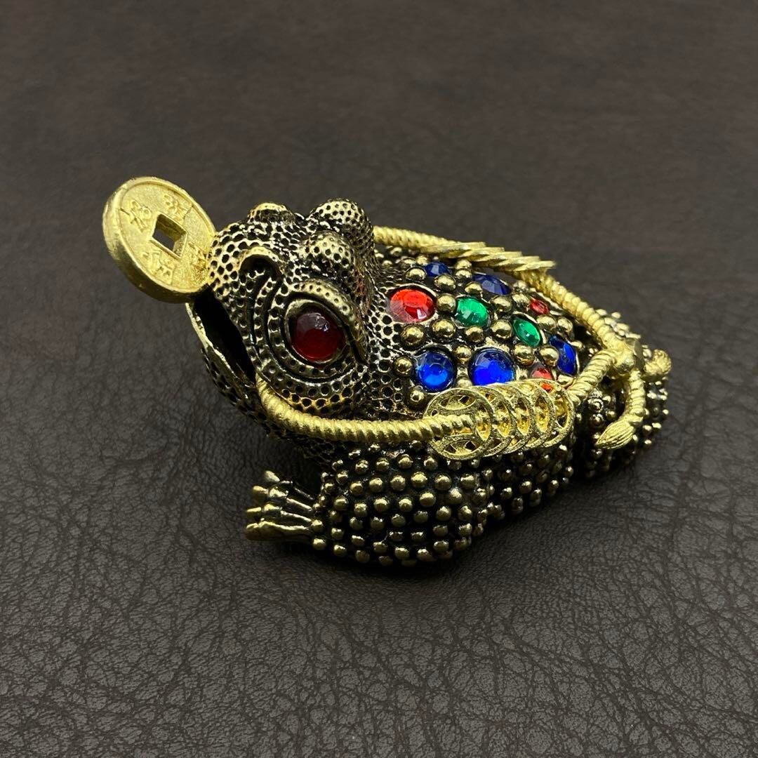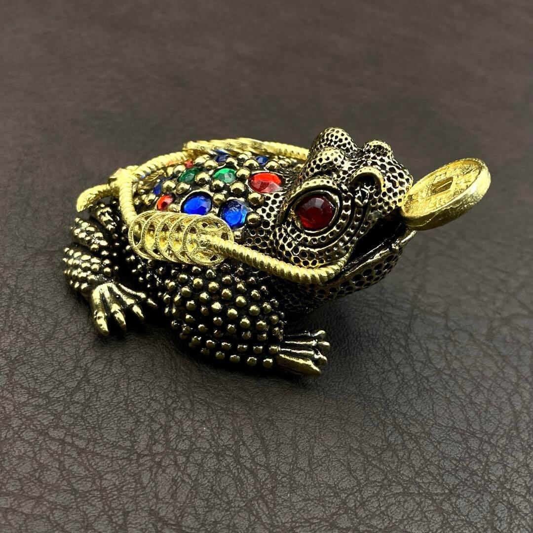 234 真鍮 置物 アンティーク ヴィンテージ ハンドメイド 動物 カエル 三足蛙 三脚蛙 銭