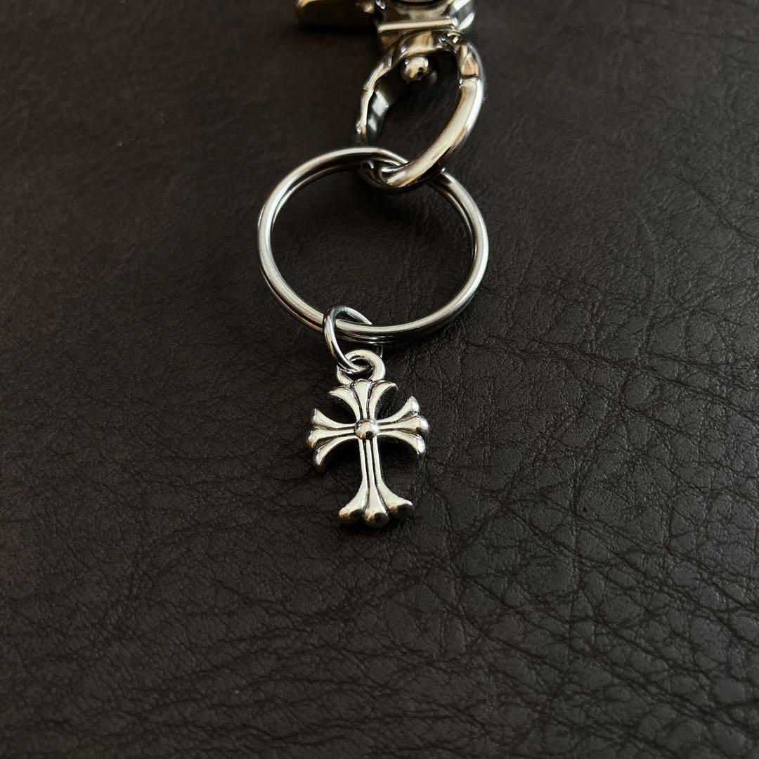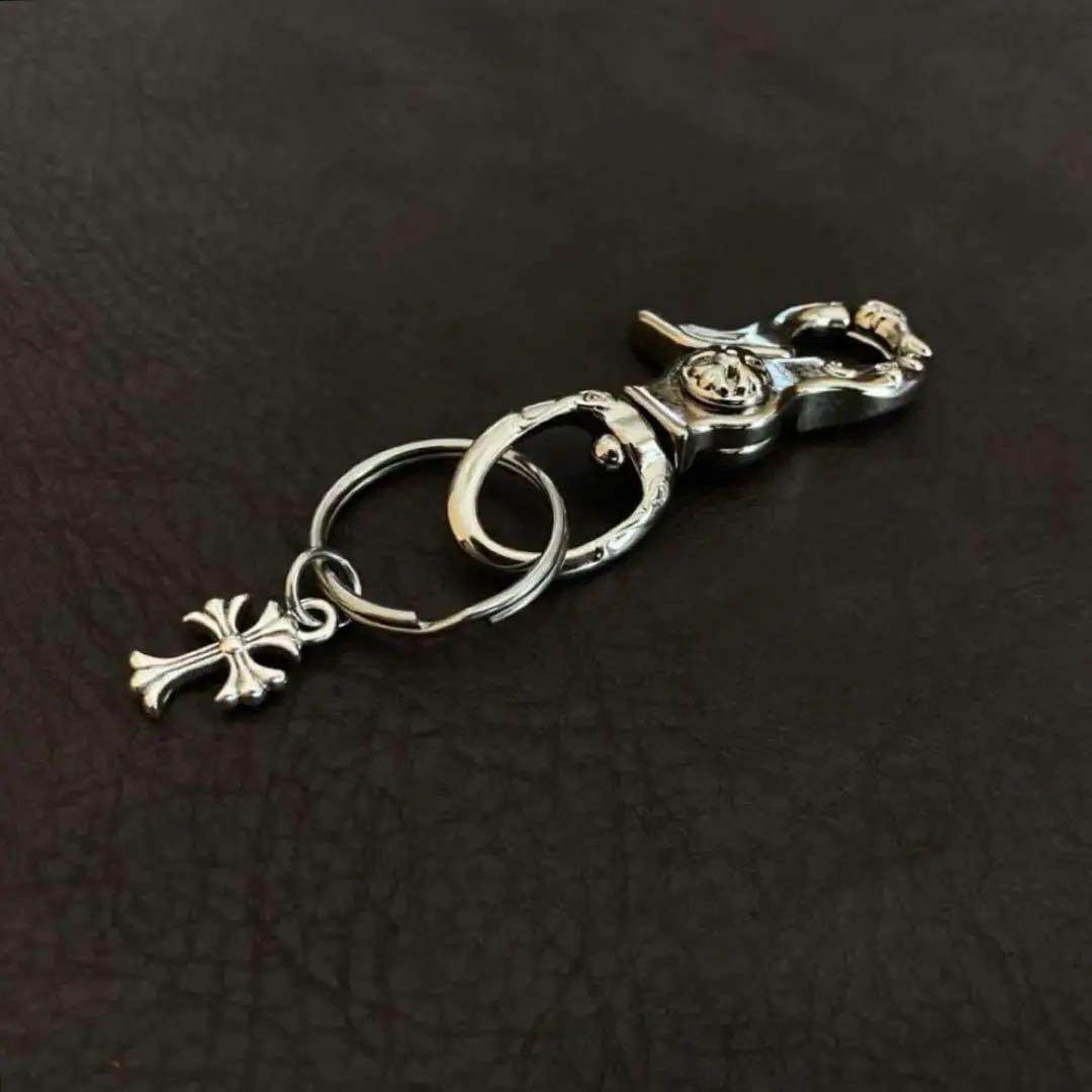 265 真鍮 シルバー キーホルダー キーリング 十字架 カラビナ フック ハンドメイド クロス チャーム付